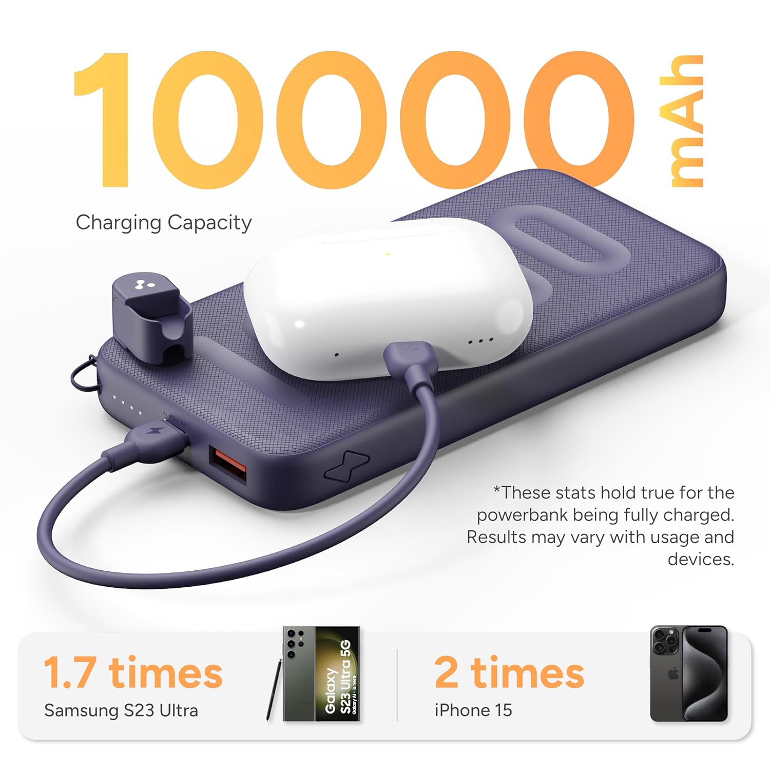 - 🔋 10 000 mAh may not be enough for multiple full charges on larger devices (e.g., big tablets).