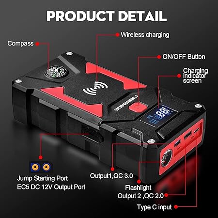 The FNNEMGE 6000A Peak Car Jump Starter is a high-capacity, portable jump starter built primarily for 12V vehicles. With a 26,800 mAh battery and up to 6,000A peak current, it promises enough juice to start all gasoline engines and diesel engines up to about 10.0 L. Beyond jump-starting, it doubles as a multi-purpose power bank with USB Quick Charge 3.0 and even wireless 10 W charging support, so you can keep phones and other devices topped up on the go.